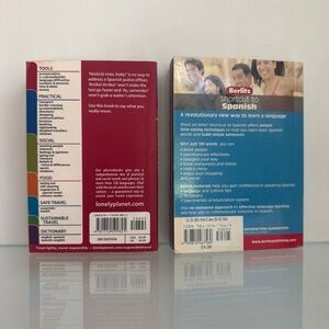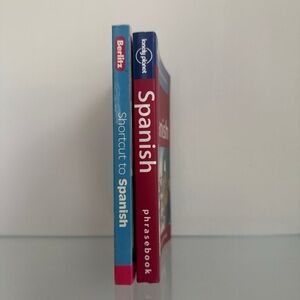 Set of two Spanish language learning books. Includes a phrasebook and a shortcut.