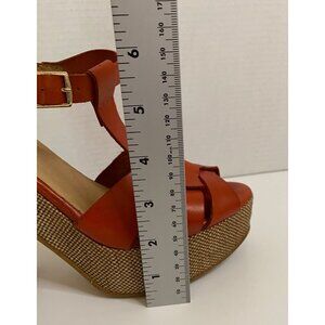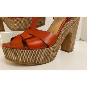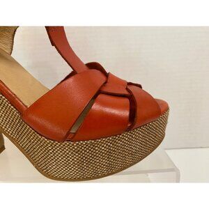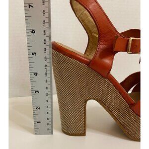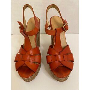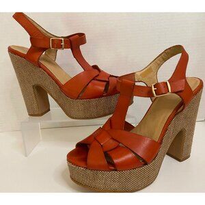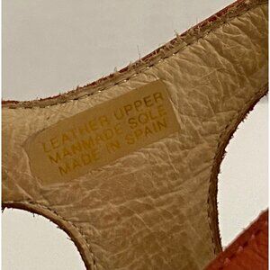 Spanish Leather Stacked Heel Women US 10.5 Sunburst Orange Sandals w/Ankle Strap