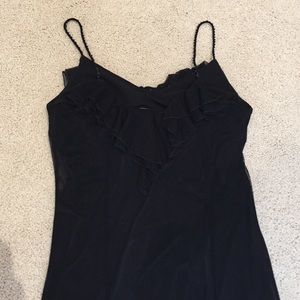 Worn 2x to special events. Bought n Nordstroms petite section. All the stunting and gems are in place. It dips lower in the back and the ruffle gives a nice accent to the back. The front sits lower on the chest without being revealing. Fabric is stretchy. For pictures see next posting