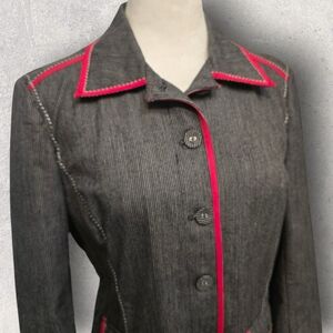 Spanner Women's Button Down Blazer Jacket Pin Striped With Red Detail Size 6