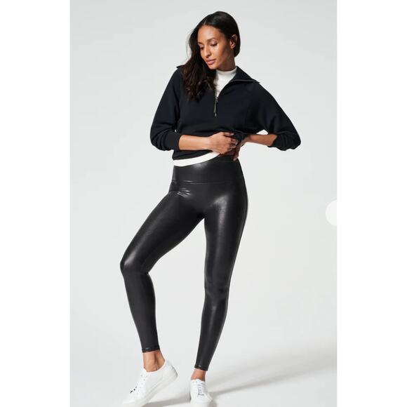 spanx, faux leather, leggings, tummy control, slimming, shaping, edgy chic, high rise, fall fashion, winter essential, Y2K revival, moto style, streetwear, curvy fit, plus size, loungewear luxe, night out, basic with edge