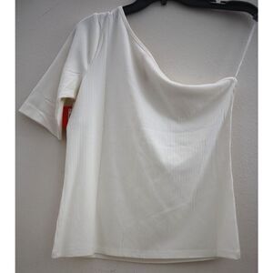 Spanx 21007R Women's Sz Medium Powder White Ribbed One Shoulder Top