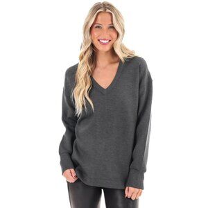 Spanx AirEssentials Brushed Tunic Dark Grey Heather V-Neck Fleece Soft Sweater L