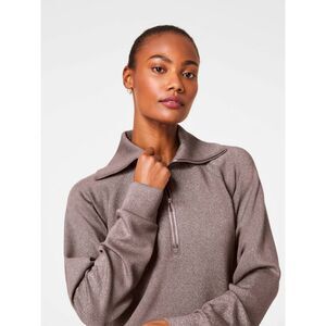 Spanx AirEssentials Shine Half Zip, Smoke Silver Shimmer XS $138 NWT