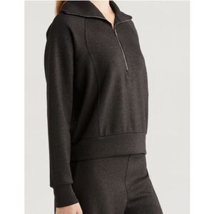 Spanx AirEssentials Shine Half Zip Sweatshirt- Very Black / Silver Shimmer Size M