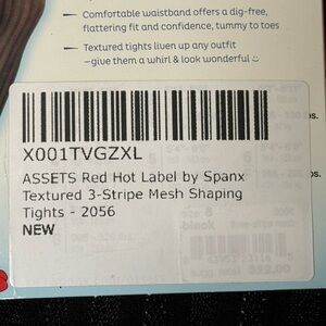 Spanx Assets Red Hot Label Black Textured Three Stripe Mesh Tights Size 5 Smooth