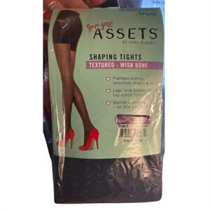 Spanx Assets Shaping Wish Bone Textured Shaping Tights by Sara Blakely 2049 Flattens tummy, smoothes thighs & rear Legs look trendy and top-notch in textures Slimming Size 1 - Height 4'10" - 5'5" Weight 95-125 lbs Color: Black Features: • Shaping Tights • Wish Bone • Honduras • Hand Wash, Line Dry Condition: New With Tags