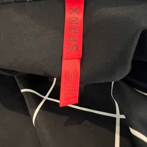 Add some fun to your beach or pool day with this Spanx Bikini Bottom in size 10. The geometric pattern in black adds a touch of sophistication to this flirty skirted bottom. Made of a blend of nylon and spandex, it offers both slimming and stretch features, ensuring a comfortable and flattering fit.