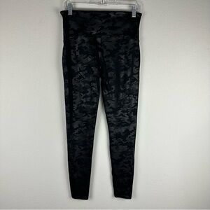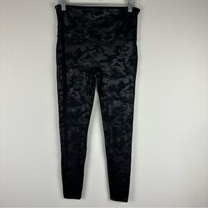 Spanx Black Camo Print Faux Leather Leggings Size XL