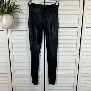 Spanx Black Faux Leather Leggings Power Waistband Coated Athleisure