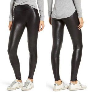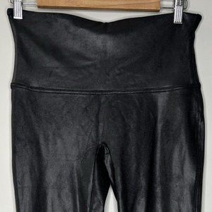 Spanx Black Faux Leather Leggings (Size S/M) High Rise Shaping Ankle Pants 2437