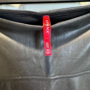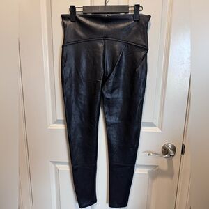 Sleek black faux leather leggings. Perfect for a stylish look.