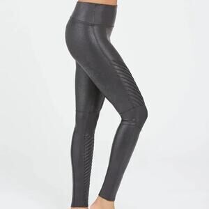 Spanx Black Faux Leather Moto Leggings with Sculpting Compression Size Medium