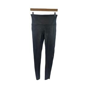 Spanx Black Faux Leather Shaping Leggings Womens Large