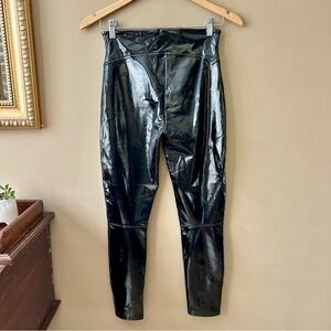 Spanx Black High Rise Faux Patent Leather Leggings Size Small