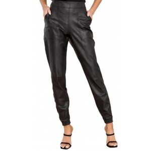 Spanx Black Joggers Faux Leather Pants with Pockets Women's Size Large Pull On