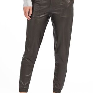Black faux leather cargo pocket jogger pants by Spanx. Pull on style. EUC. Size large measures 28” inseam , 13” rise , 16” back waistband