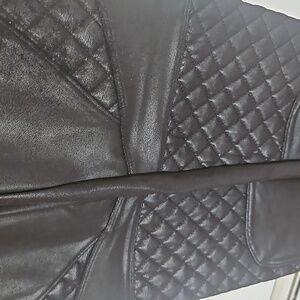 Stylish black leather pants with quilted detailing. Perfect for a chic look.