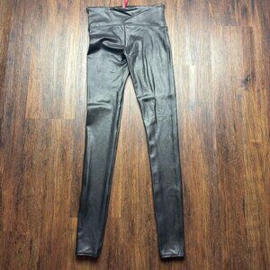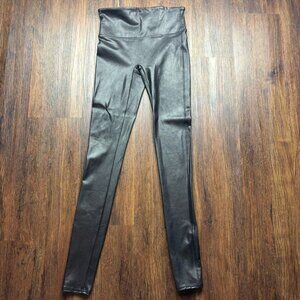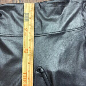Spanx Black Vegan Leather Leggings Size Medium Power Waistband
