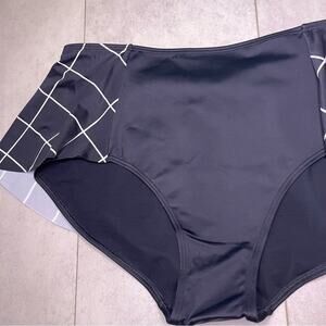 Spanx Black White Geometric Flirty Skirted Swim Bottom Modest Ruffled