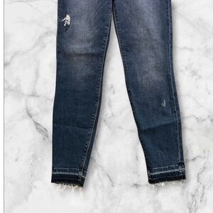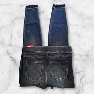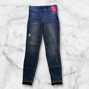 NWT! Spanx Blue Jeans Distressed Denim Leggings Pull On Pants Frayed Hem