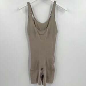 Spanx Bodysuit Open Bust Mid Thigh Shapewear Slimming Thick Straps Tan Size XL
