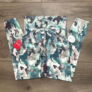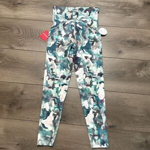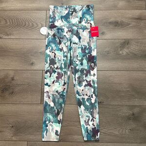 Spanx Booty Boost Painted Camo Pink Green Contoured Waist High Rise 7/8 Leggings Size XS. New with tag! Light pink and green camo. Flattering contoured waist. Hidden pocket back waistband. See pictures for measurements and size chart