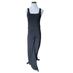 Spanx Booty Boost Wide Leg Jumpsuit Size L Black Easy Access Sculpting One Piece
