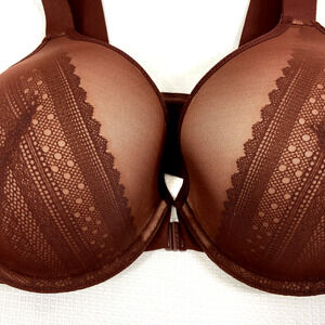 Spanx Bra Womens 38C Brown Illusion Lace Full Coverage Underwire Front Hook