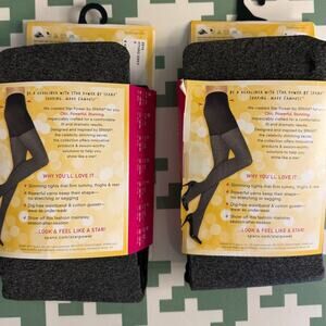 Set of two pairs of Spanx Center Stage Shaping Tights in heathered grey — both new with tags. Originally $28 each (total value $56). Designed to shape, smooth, and support for a sleek, polished look with all-day comfort.