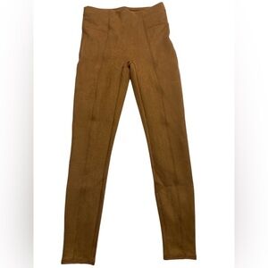 Spanx Cognac Brown Tummy Control Faux Suede High Waist Pullon Leggings Pants Med