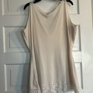 Size 3x. Lace detail at the bottom. A few small discolorations as pictured.