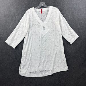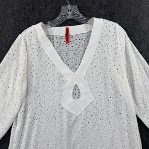 Spanx Cover Up Women's Small White Keywhole Cutout 3/4 Sleeve Relaxed Beach Pool