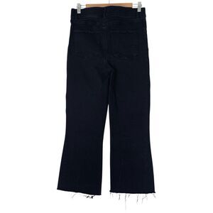 Spanx Cropped Flare Jeans Womens Large Black Raw Hem Pull On Stretch Denim