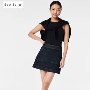 NWT Spanx Denim Mini Skirt Raw Indigo in size Large. Retails $140.