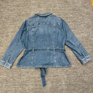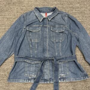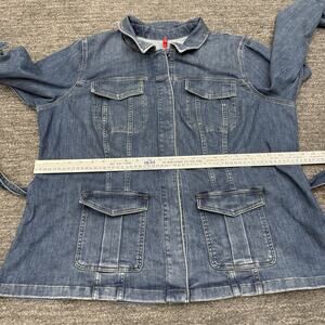 Spanx Denim Shirt Jacket Women 3X Plus Jean Tie Waist Chore Workwear Stretch