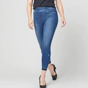 Spanx Distressed Ankle Skinny Jeans Blue Pull-On Stretch Size Large