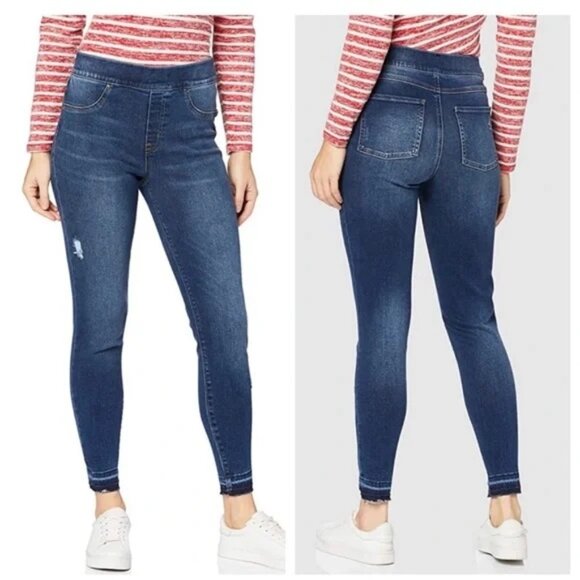 Spanx Distressed Ankle Skinny Jeans Raw Hem Stretchy Denim Shaping Size M