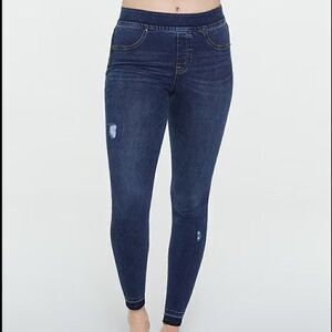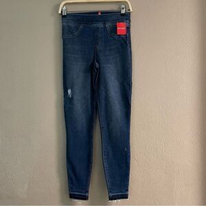 Spanx Distressed Denim High Rise Elastic Waist Jeggings