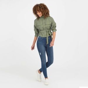 Spanx Distressed Medium Wash Released Raw Hem Skinny Jeans Size Medium M