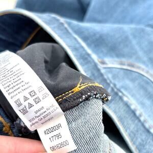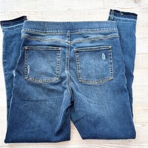 In excellent condition! Dark/medium wash with raw hem and light distressing Super stretch, pull on, true to size