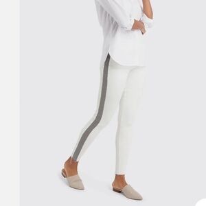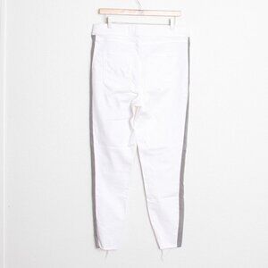 Spanx Distressed Skinny Jeans White With Side Stripe Raw Hem High Rise XL