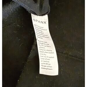 No flaws, defects, rips or tears. These leggings are an excellent condition. Solid black. No seam in the front. They are 88% polyester 12% spandex. The Spanx Essential Leggings in black are a versatile and comfortable option for women. With a high waist and capri length, these leggings are perfect for various occasions such as travel, activewear, or casual outings. Made with a blend of polyester and spandex, these leggings offer compression, stretch, and breathability. The solid black color and lightweight fabric wash make them suitable for all seasons, while the brand's reputation for quality ensures durability. Ideal for activities like yoga, running, or weightlifting, these leggings provide both style and functionality for the modern woman on the go.