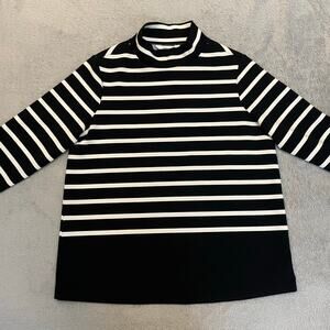 Spanx Evereve AirEssentials Mock Neck Stripe Pullover. Size M. Boxy fit. Black and white.