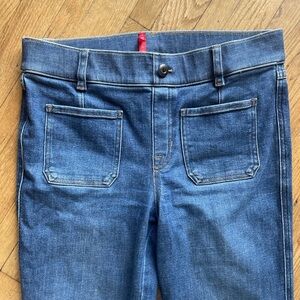 Spanx Everywear Flare Jeans Patch Pocket Stretch Denim Size M Medium Petite