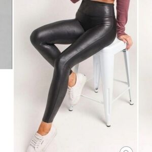 Faux Leather that flatters. This best-selling style features sleek, smoothing faux leather fabric that shapes and lifts and our contoured Power Waistband for core compression.