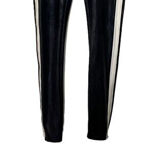 Spanx Faux Leather Black White Side Stripe Pull On Leggings Womens Size Small