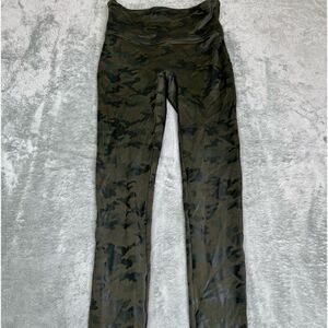 Spanx Faux Leather Camo Leggings Women’s Size Small Matte Green