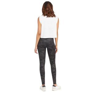 Spanx Faux Leather Camo Matte Black Tummy Shaping High Waisted Leggings