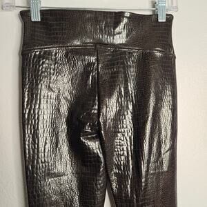 Spanx Faux Leather Croc Leggings Brown Black Size S Glossy Patent Animal Edgy